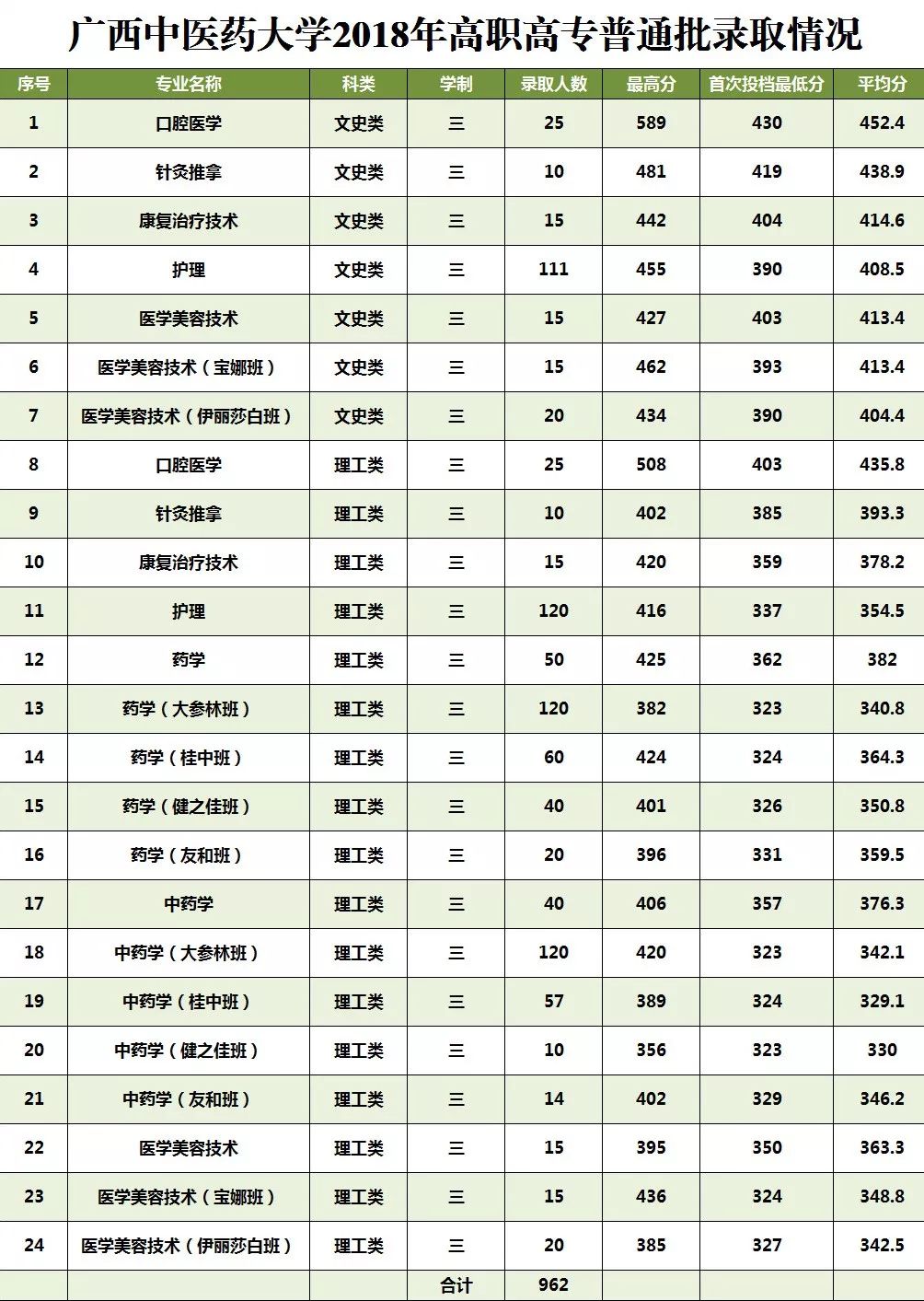 我校2018年广西高职高专普通批录取情况 来源:招生与就业处 日期:2018-08-13 点击数: 次 分享到: 我校2018年在广西高职高专普通批共录取考生962名,其中文史类211名,理工类751名,顺利完成该批次录取计划,详情如下:录取结果以广西招生考试院公布为准,请被录取考生保持填报志愿时所留联系电话畅通以查收录取通知书。 打印正文 关闭本页