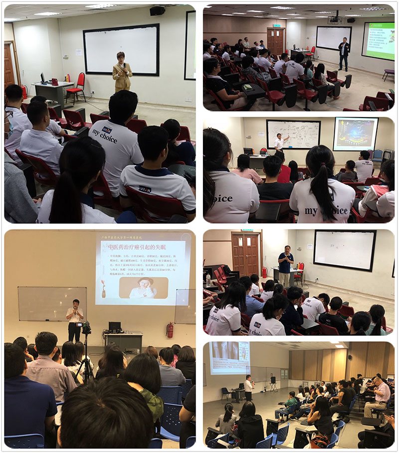 8月4日至5日,两校合作举办了 “桂派中医内妇儿及针灸推拿特色手法提升班”,共有70余位来自马来西亚各中医院的中医师参加了本次培训班的学习,我校7名专家分别做了 “哮喘及特禀体质咳嗽的中医证治”、 “高血压病的中医药防治”、 “颈椎病的诊断与治疗”、“腰腿疼痛与骨盆的关系”等系列讲座,介绍了桂派中医特色和大量临床实例,并对中医药思想和文化进行了深入浅出、形象生动的讲解,培训现场座无虚席、深受学员好评。