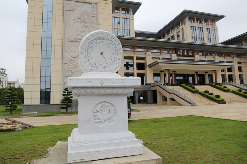 9月9日上午,正值新学期开学,汉白玉日晷景观在星空彩票老版本下载仙葫校区图书馆前、菩提林东侧成功安装,正式落户仙葫校区。