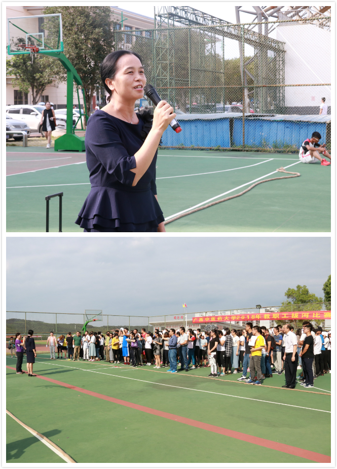 为积极推动群众体育和全民健身活动的开展,丰富教职工的业余文化生活,9月29日下午,全校教职工拔河比赛在仙葫校区篮球场举行。学校纪委书记韦雪芳参加了此次活动并致辞。