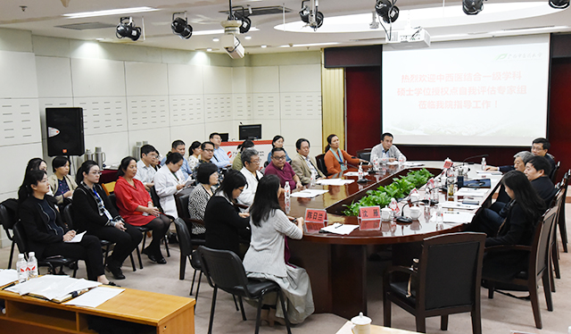 11月14日上午,由黑龙江中医药大学李冀教授、北京中医药大学刘建平教授、右江民族医学院唐乾利教授、湖北中医药大学王平教授、广州中医药大学第一附属医院冼绍祥教授、上海中医药大学附属岳阳中西医结合医院沈雁教授和湖南中医药大学第一附属医院邓奕辉教授组成的专家组莅临瑞康临床医学院,对我校中西医结合一级学科硕士学位授权点自我评估开展现场评审。我校副校长戴铭,总督学、中西医结合学科带头人罗伟生,研究生学院负责人、一附院院领导出席评审会。