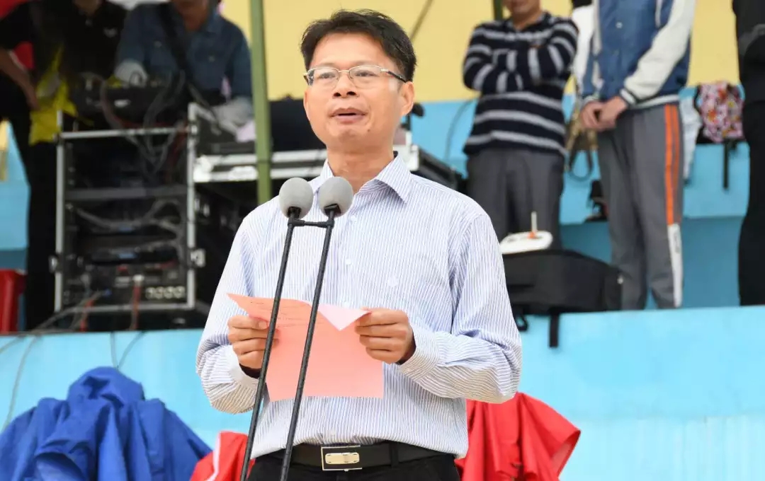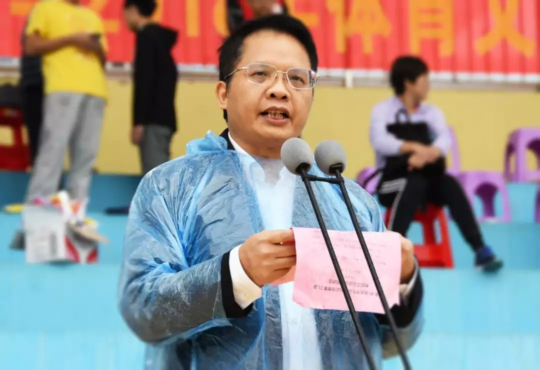 烟雨蒙蒙,伴随着第一支方块队入场,运动会开幕式拉开帷幕。运动员入场完毕后,进行升旗仪式。何刚亮致开幕辞并宣布我校2018年体育文化节第40届大学生田径运动会暨第21届教职工运动会开幕。