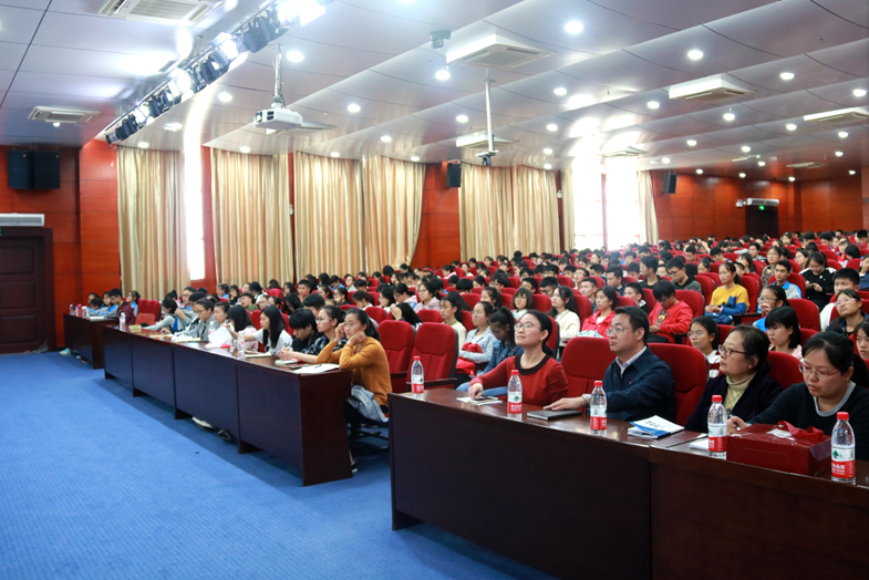 11月27日下午,在仙葫校区图书馆第二会议室,学校党委书记尤剑鹏以《做新时代的奋斗者》为题为我校大学生作了专题党课。学校党委办公室、学生工作处领导老师、辅导员代表和学生代表500余人参加了党课。党课由学生工作处处长叶勇玲主持。