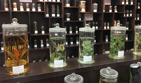 陈列于星空彩票老版本下载仙葫校区的药材标本 人民网李轶群摄