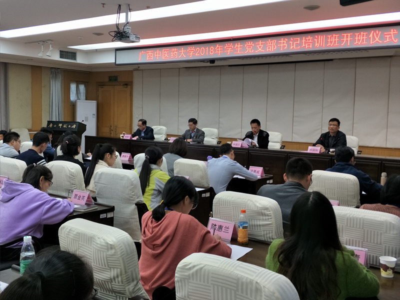 为推动全面从严治党向基层延伸,推进学校党支部“强基固本”工程和“三全育人”项目,进一步提升学生党务骨干的思想政治素质和履职担当能力,校党委于11月29日至12月1日在广西师范大学举办了学生党支部书记专题培训班。我校党委副书记何并文、组织部部长唐振宇、组织部副处级组织员张艳娟以及广西师范大学组织部部长林国庆、副部长郑国辉出席了开班仪式,全校59名学生党支部书记参加了培训。