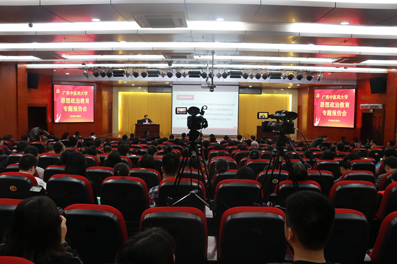 尤剑鹏在总结讲话时强调,徐绍川部长的报告有高度、有水平,脉络清晰、生动形象,对贯彻党的教育方针、推进我校思想政治教育工作质量全面提升具有极其重要的指导意义。为了进一步学习贯彻落实徐部长的报告精神,尤剑鹏要求全校上下深化思想认识,提高政治站位;履行主体责任,强化责任担当;坚持统筹兼顾,把握时间节点,营造良好氛围。要全面加强意识形态和宣传思想文化工作,要充分利用改革开放40周年和广西壮族自治区成立60周年的有利时机,大力宣传我国和我区经济社会发展取得的成就,宣传全国教育大会精神,讲好中医药、壮瑶医药文化故事,大力营造团结奋进的主流舆论氛围,牢牢掌握意识形态工作主动权主导权,培育和践行社会主义核心价值观,营造安全、文明、和谐的育人环境。