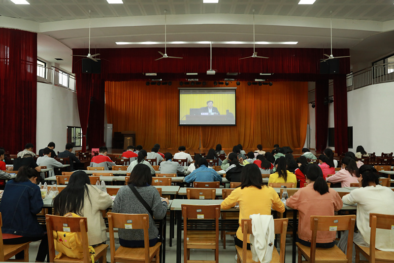 报告主会场设在仙葫校区第二会议室,自治区党委统战部副部长李银霞,教育厅巡视员唐耀华,学校领导等400多名师生共同在主会场聆听了报告。同时,仙葫校区大学生活动中心、明秀校区会展中心多功能厅设立分会场,400多名学生通过直播聆听了报告。