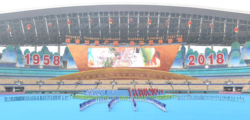 乘改革东风,绘锦绣壮乡。12月10日,广西壮族自治区成立60周年庆祝大会在广西体育中心举行,按照自治区导演组的要求,防城港市和我校合作,共同完成表演第二篇章活动第三版块《一带一路谱新篇》内容,表演节目为《独弦琴 海韵》。我校选派360名优秀大学生参演《海韵》京族少女的舞蹈演出,同时,选派1805名专业背景观众,200名志愿者参与现场引导等工作,圆满完成广西壮族自治区成立六十周年庆祝大会的各项任务。
