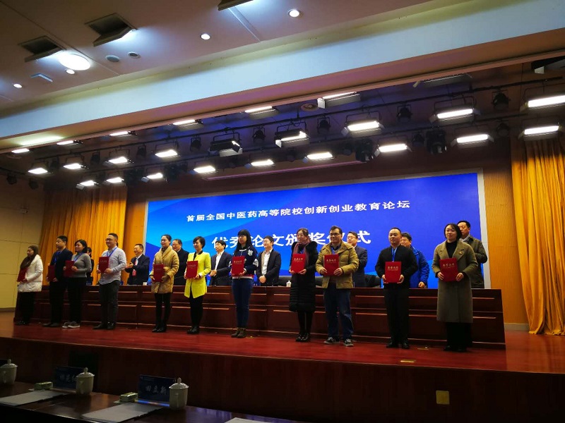 在论坛开幕式上,主办方对征集的创新创业教育论文进行了表彰。我校乔赟同志的论文《针灸推拿学创新创业型人才培养现状对策》、伍冠一同志的论文《基于团队学习模式的大学生创新创业能力提升研究与实践》获得二等奖,章晓云同志的论文《科研与临床结合指导中医药院校创新创业能力培养模式研究》、吴德坤同志的论文《关于中医药院校大学生创新创业意识培养的思考》获得三等奖,王竞静同志的论文《临床药学专业课程设置对药学专业学生临床创新创业思维培养的探讨》、黄毅同志的论文《3D-licer软件在外科实习临床教学中的应用研究》获得优秀奖。