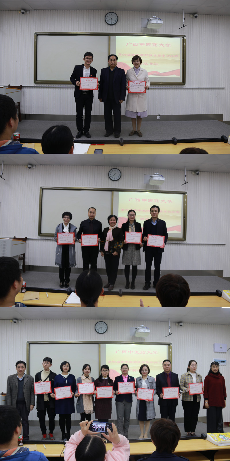 在颁奖仪式上,各赛场专家代表对比赛现场的情况进行了点评,围绕教学理念、教学设计、教学方法、教学内容、教学风格及教学运行过程等方面向教师们讲述一门出色的课程应具备的内涵,同时肯定了教学基本功比赛对促进课堂教学改革、提升教学能力和教学效果的积极作用。最后,学校总督学罗伟生教授及部分专家评委为获奖教师颁奖。