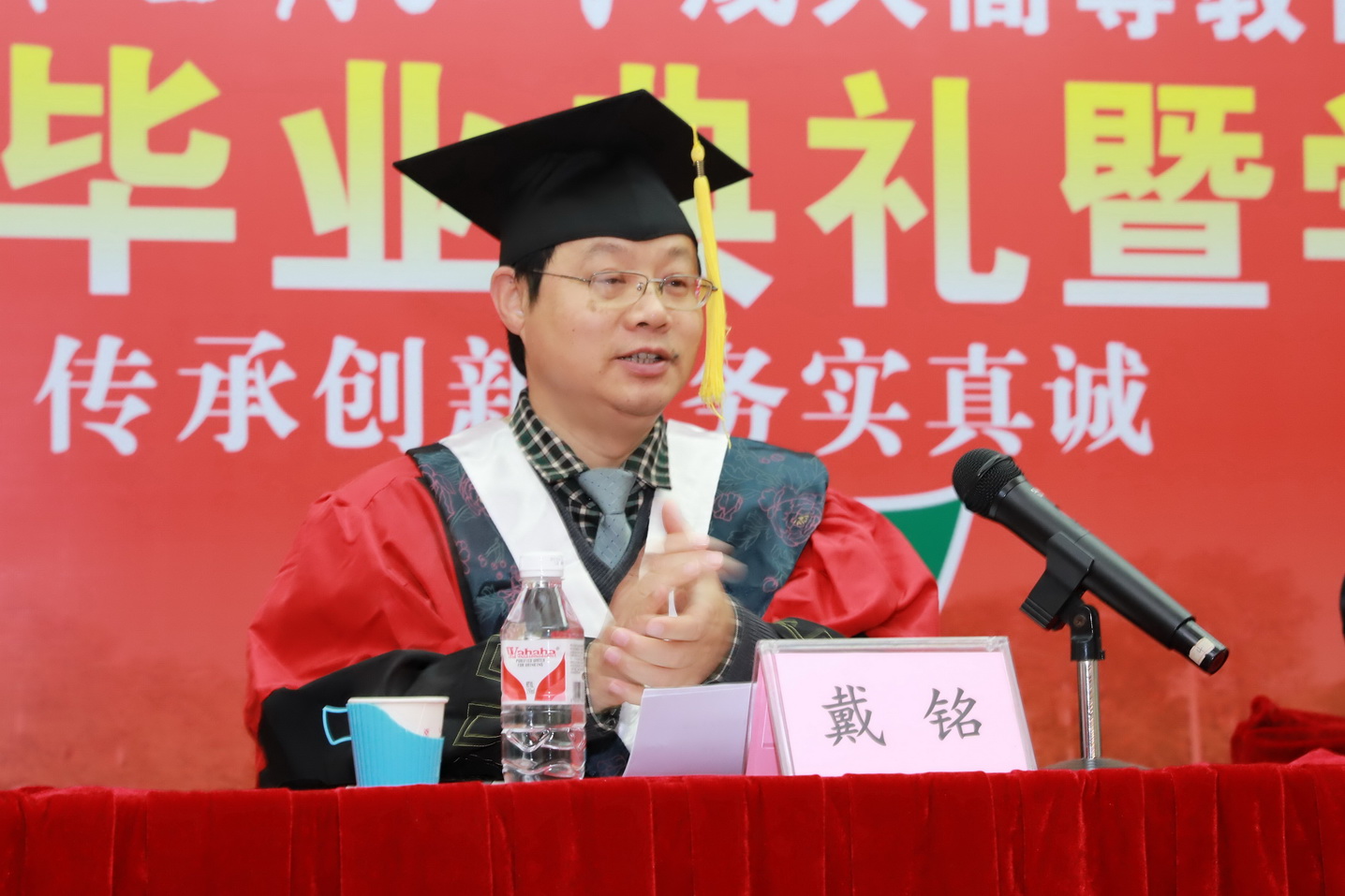 毕业典礼上,教师代表郭占京和毕业生代表麦宇倩先后发言。