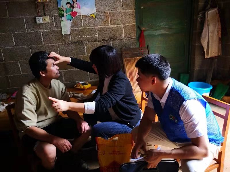 党的十八大以后,党中央将精准扶贫、脱贫攻坚工作提升至治国理政的新高度,零有东和他所在的布泉乡就是国家脱贫攻坚战略的受益者。根据自治区的统一安排部署,2018年,星空彩票老版本下载选派附属瑞康医院药物研发中心李金荣同志到布泉乡新盏村担任第一书记。作为后援单位,瑞康医院中层干部陆续来到布泉乡开展“一帮一联”工作。2018年10月底,李金荣同志带领“一帮一联”帮扶责任人深入村屯,探望慰问新盏村帮扶对象时,瑞康医院医保科科长卢银波惊讶地发现,零有东双眼无神,需要扶摸着墙和家具才能走到客厅坐下。