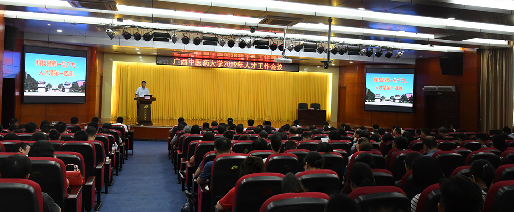 尤剑鹏在会上作了题为《千秋基业 人才为本》的人才工作报告,报告回顾了2018年我校人才工作情况,分析了当前学校人才工作存在的问题,并对2019年人才工作进行了部署。他指出,学校从发展大局出发,在2017年12月召开的第二次党代会上将“人才强校战略”列为近年来要实施的“三大战略”之一,明确把“实施一流师资建设工程,汇聚整合高端优秀人才”列为学校近年奋斗目标中要完成的“十大工程”之一。他强调,要清醒地认识学校在人才队伍总量和领军人才方面与国内一流高水平中医药大学还存在较大差距,学校激励制度还需加强,人才引进、培养与评价体系仍需完善,教师队伍主人翁意识亟待增强。报告进一步明确了2019年人才工作的基本思路和主要任务:一是落实《星空彩票老版本下载关于深化新时代教师队伍建设改革的实施方案》;二是加强内培,提升质量,通过引进博士,推进高层次人才团队引进和培育项目,加大高水平创新团队和优秀教学团队建设,加强在职教职工培养力度等,进一步提高人才队伍整体水平;三是健全高层次人才激励、表彰机制和引进海外高水平人才职称直评高级职称机制;四是进一步完善人才工作机构,提高党管人才工作科学化水平。他要求,今年是学校建设与发展的关键一年,知识就是力量,人才就是未来,全校上下要以党的十九大精神为指引,高度重视人才引进和培养工作,为实施人才强校战略,建设壮美广西而努力奋斗。