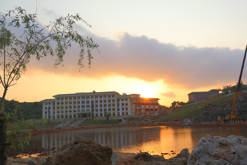 自诚楼西侧刚刚落成的“并育并行”石刻,出自《礼记 中庸》:“万物并育而不相害,道并行而不相悖”,完美的诠释了以阿平湖为代表的校园文化建设整体理念。阿平湖景观建设是学校绿色校园、生态校园和文化校园建设重要组成部分,在杨柳拂堤的时候,阿平湖周围种植的草皮已呈现嫩绿,所种植的和顺树、无花果树、桂花树、秋枫树、土沉香树、樟树、芒果树等正长出嫩芽,乔木奕奕、芳草萋萋、杨柳依依与周围的河图洛书石、校名石、校歌石、校训石等系列文化景观融合成了一幅精美的画卷。