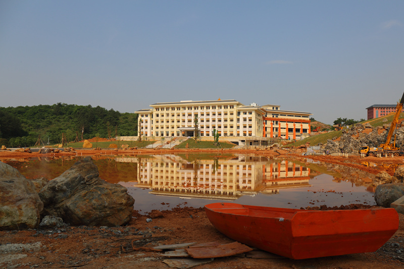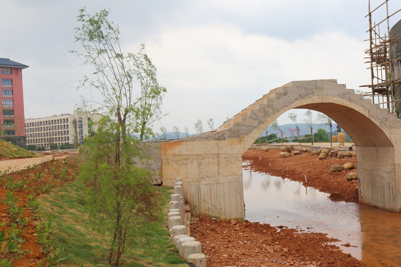 暮春夏初,阳光明媚和蔼,万物焕发着青春。正在建设的阿平湖是我校4A级景区园林式校园建设的核心景观,她的建设“日日新,又日新”,一棵树和另一棵树一起抽叶,一片草和另一片草一起发芽,深深浅浅、层层叠叠,一同在湖光山色中勾画出一派绿意盎然。