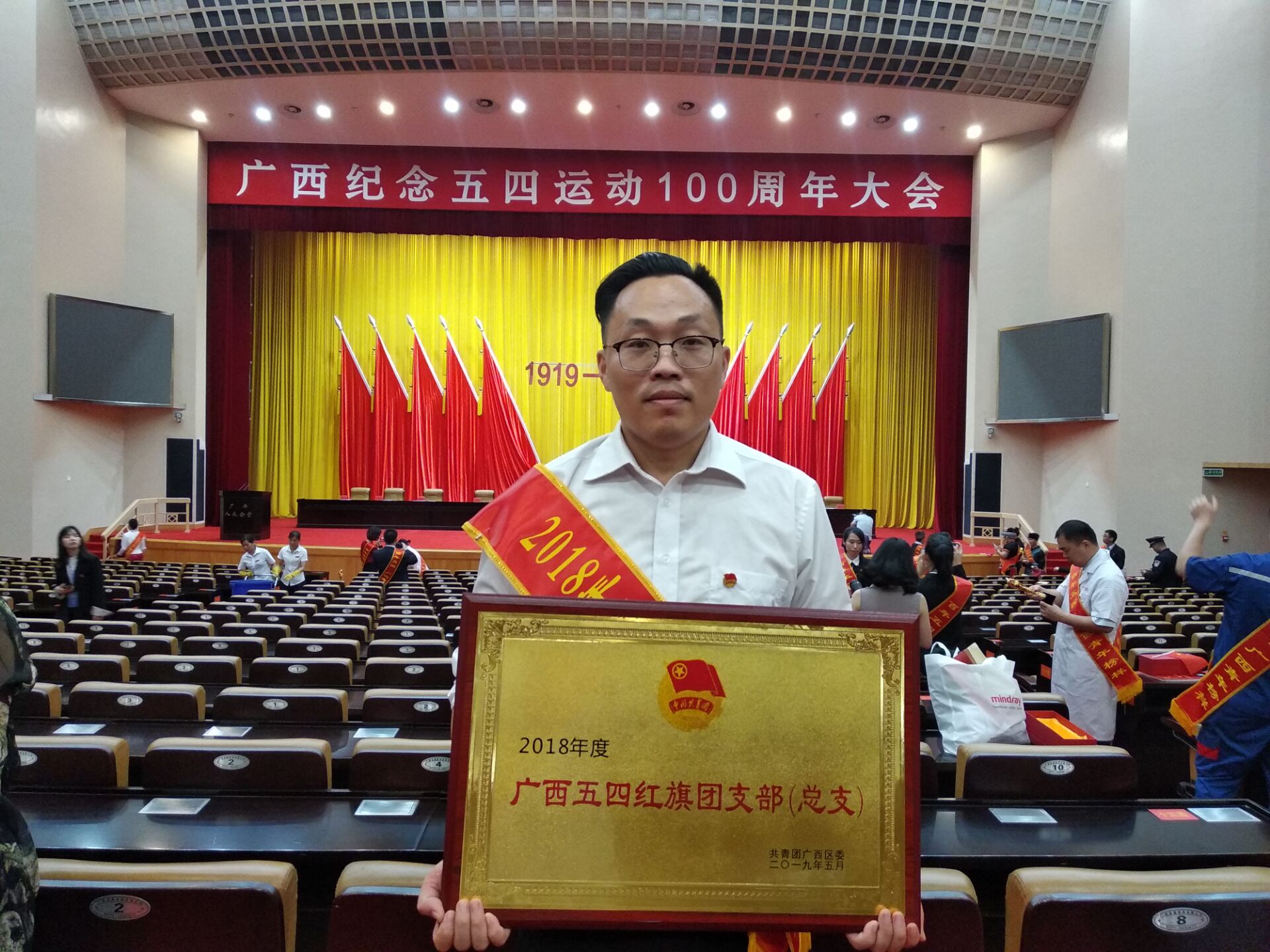 4月30日下午,广西纪念五四运动100周年大会在广西人民大会堂隆重召开,自治区党委书记、自治区人大常委会主任鹿心社发表重要讲话,自治区党委副书记、自治区主席陈武,自治区党委副书记孙大伟等区领导出席会议,并共同为获表彰的集体和个人代表颁奖。共青团星空彩票老版本下载基础医学院委员会荣获“广西五四红旗团支部(总支)”称号。