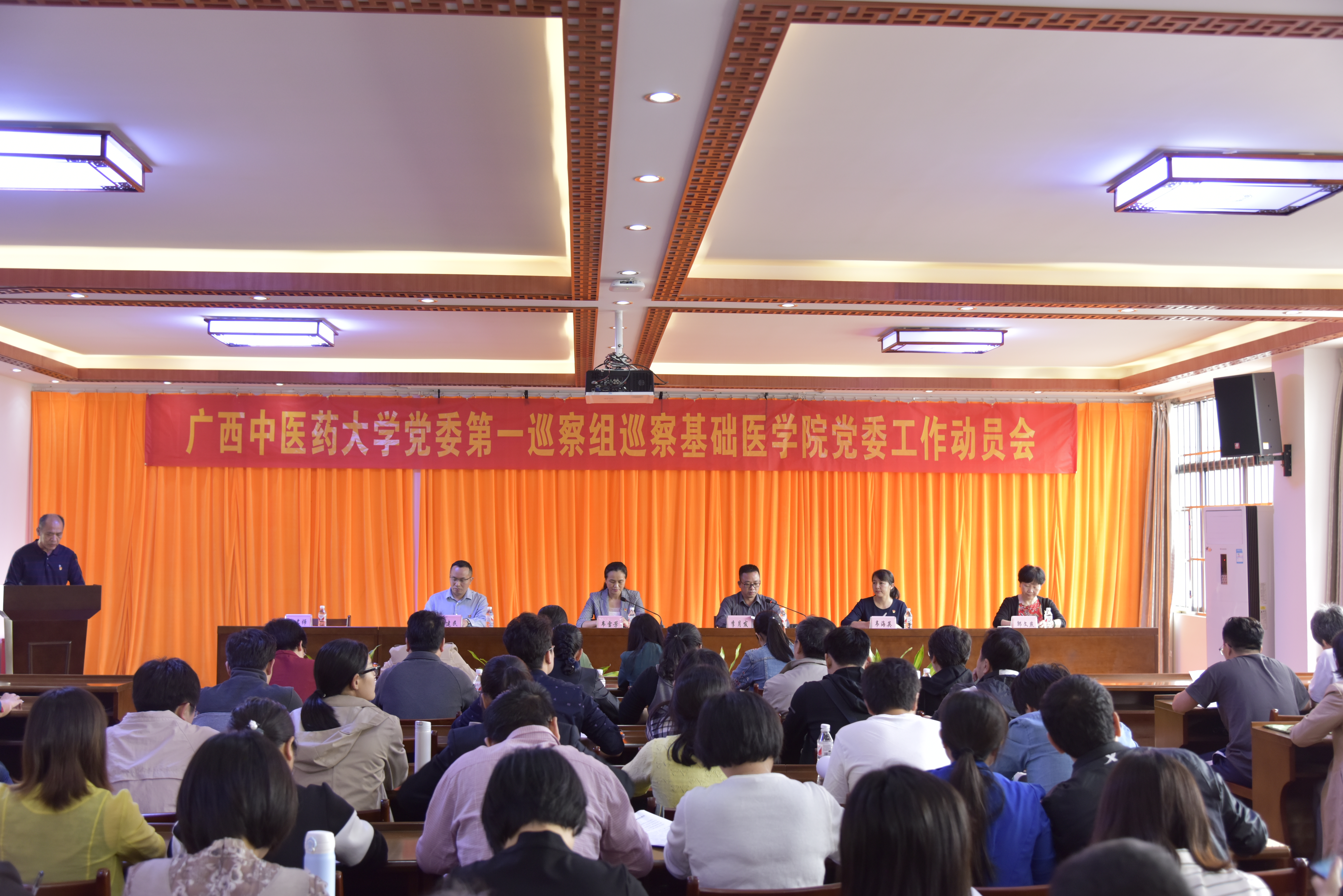 学校党委第一巡察组进驻基础医学院开展巡察工作 来源:基础医学院 作者:文/潘雄泽 图/陈诚 日期:2019-05-08 点击数: 次 分享到: 5月7日下午,校党委第一巡察组在基础医学院召开了巡察工作动员会。校党委常委、纪委书记、巡察工作领导小组副组长韦雪芳参加动员会,并代表巡察领导小组对本轮巡察工作提出了明确要求。学校党委第一巡察组组长李月发在动员会上作动员讲话。基础医学院党委书记龚名师作表态发言。基础医学院党委领导班子成员、全体教职工参加巡察工作动员会。会议现场 打印正文 关闭本页