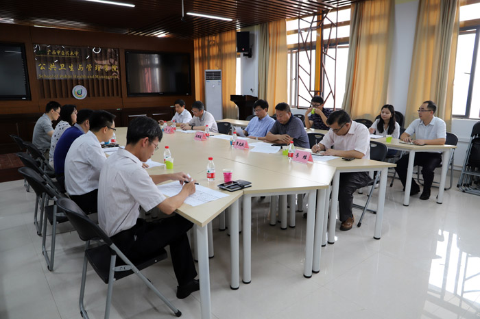 公共卫生与管理学院院长董柏青、副院长凌泽农汇报了预防医学实验室建设项目进展情况,预防医学系熊润松博士详细介绍了实验室装修设计要求。