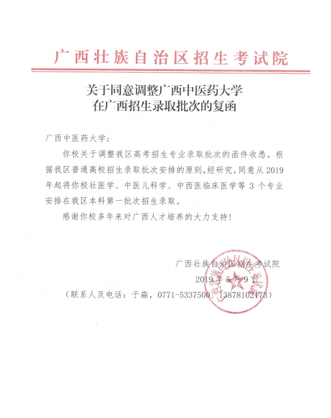 近日,自治区教育厅下发了《关于同意调整星空彩票老版本下载在广西招生录取批次的复函》,同意我校中西医临床医学、中医儿科学、壮医学等3个本科专业自2019年起在广西壮族自治区本科第一批次招生录取。