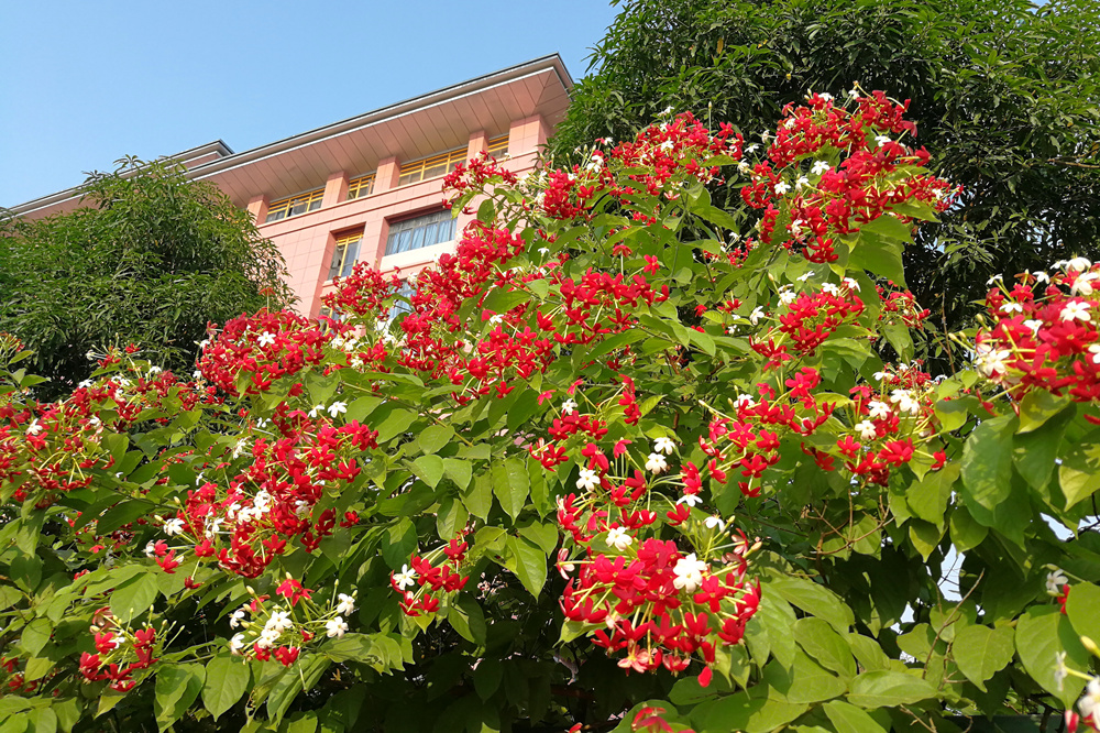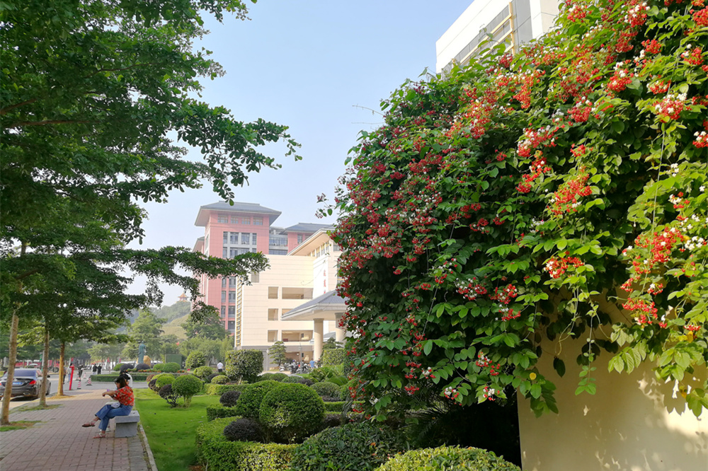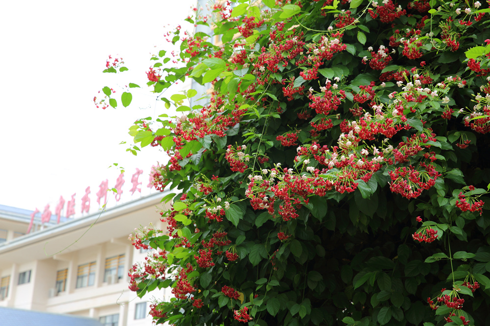 五月花开,不仅是路两旁沁人心脾的玉兰,更有那艳艳的使君子。时下的星空彩票老版本下载仙葫校区随处可见的便是那阳光下簇簇盛放的使君子花。从晨钟暮鼓楼校门,仲景大道两侧,亲亲路自诚楼对面的围栏,到中医药科学实验中心前广场以及药师山神农阁周围,红白相间的使君子花,花团锦簇,散发出阵阵幽香,给五月的星空彩票老版本下载校园增添别致的景色,引来众多师生及校外慕名而来的客人驻足观赏。