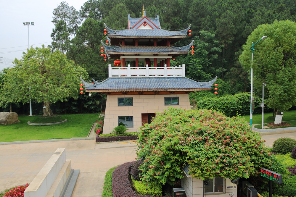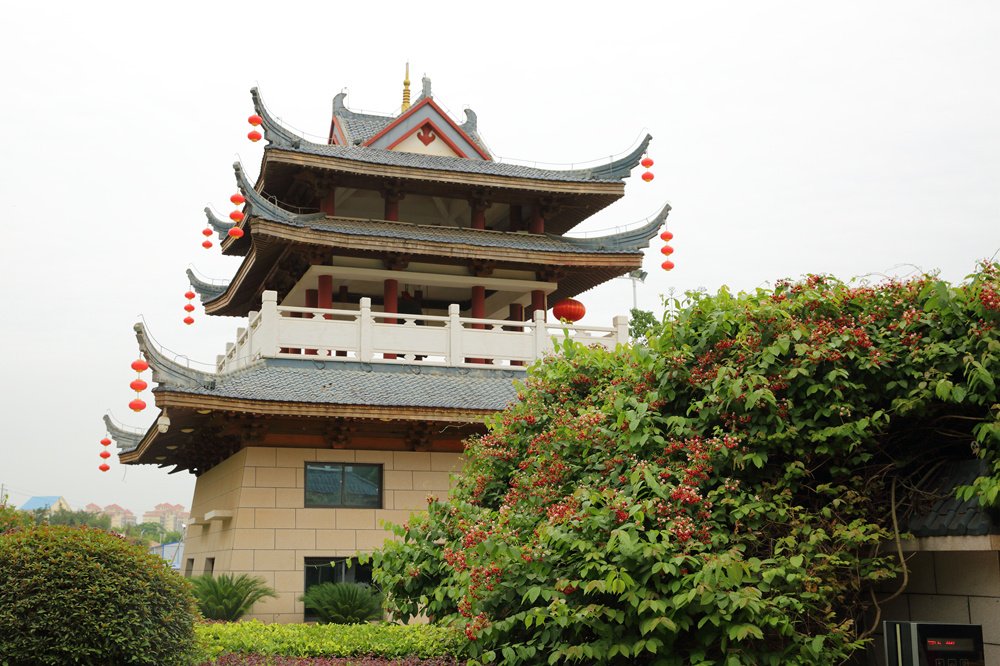晨钟暮鼓楼校门的使君子