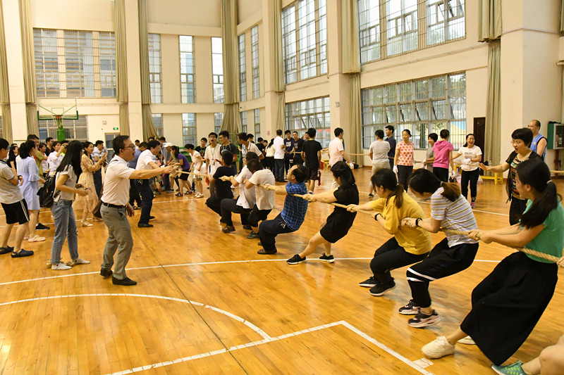 为推动群众体育和全民健身活动的开展,丰富教职工的业余文化生活,增强集体凝聚力,以更加饱满的精神状态迎接祖国70华诞的到来,5月28日下午,全校教职工拔河比赛在仙葫校区体育馆举行。校党委副书记何并文参加活动并致辞,校工会常务副主席李欢澄主持活动。