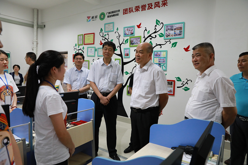 卢景辉一行还实地参观了我校仙葫校区晨钟暮鼓楼、医圣广场、阿平湖、壮医药办学成果展厅、瑶医药文化展厅、科学实验中心、海洋药物研究院以及易班工作站、大学生心理健康活动中心等,了解了我校办学历史、校园文化景观、壮瑶医药理论体系、学生工作等内容。