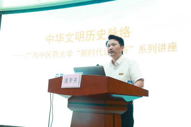 庞宇舟以《中华文明历史脉络》为题,以坚定文化自信为主线贯穿始终,给我们疏理出一条中华文明发展与传承的清晰脉络。同时,通过列举一些经典案例,用中华传统文化的和谐理念,从不同侧面来分析当前美国发起的对华贸易战,认为这是西方霸权式的做法,是极不利于文明交流发展的理念体系和模式。中国梦与世界各国人民的美好梦想是相通的,人类始终把追求平等、合作、互利、共赢等理念完整地注入世界文明的发展进程中。