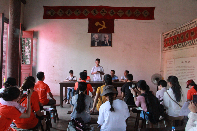 本次实践以体验式教学为主,让实践队队员们深入学习解放思想、实事求是、开拓创新、百折不挠的百色起义精神,开展了丰富多样的现场教学活动:一是重走红军路,实践队一行身着红军服,高举军旗,重走当年邓小平同志挺进右江的路线。炎炎夏日,实践队队员们在崎岖不平的“运枪小道”上相互帮助与鼓励,不屈不挠,勇往直前,感受红军路上先辈们的百色起义精神;二是红军船上唱红歌,通过简单的歌词与曲调感受振奋人心的力量;三是参观右江苏维埃政府旧址,并模拟“右江地区第一届工农兵代表大会”召开情景,让队员们如临其境,仿佛回到当年烽火连天的革命岁月,一次次被先辈们的伟大爱国精神所感动。