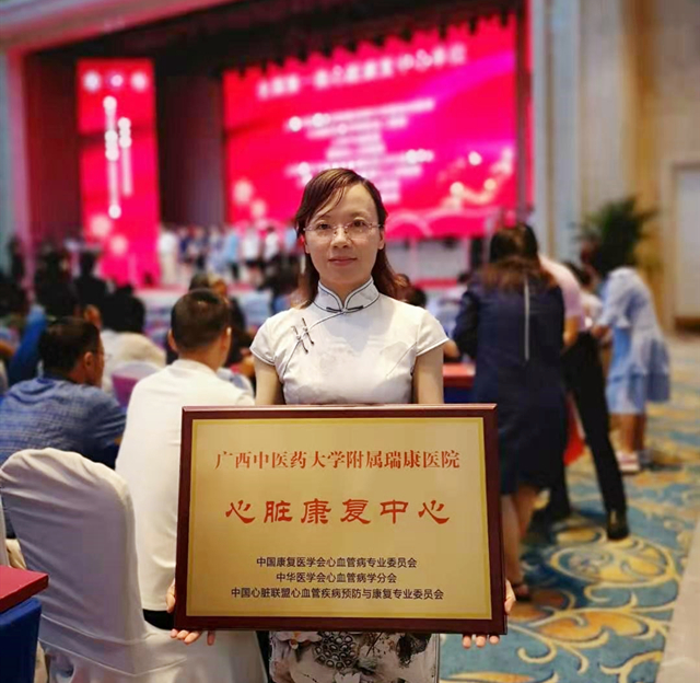全国第二批心脏康复中心单位,是由中国康复医学会心肺预防与康复专业委员会、中华医学会心血管病分会、中国心脏联盟心血管疾病预防与康复专业委员会联合共同发起,对全国数百家机构经过层层筛选最终产生。今年3月10日,附属瑞康医院在江西宜春顺利通过全国心脏康复中心申请答辩,同年5月5日接受国家心脏康复中心专家组成的复核专家组的现场复核认证,并于7月得到正式下文批复。此次受牌,代表附属瑞康医院心脏康复工作获得国家心脏康复中心的认可,这不仅让医院心脏康复中心走出广西,还为下一步将中心建设成为国家心脏康复中心培训基地打下坚实基础。