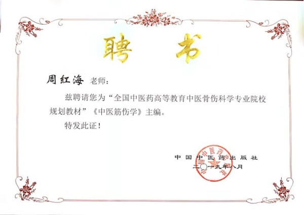 近日,我校周红海教授获“全国中医药高等教育中医骨伤科学专业院校规划教材”《中医筋伤学》教材的主编资格,这是我校建校以来第一次荣获全国院校规划教材的主编资格。