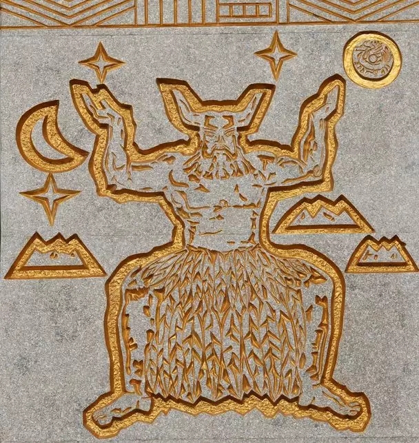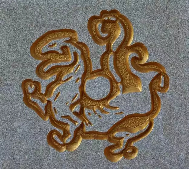 “朱雀”“玄武”“青龙”“白虎”为汉代瓦当四方之神,体现“东西南北中”即“东青龙、西白虎、南朱雀、北玄武、中人土”的方位意指。由于“中也者,天下之大本也”(《中庸》),故以此中土意人,彰显中国传统文化之精髓——以人为本。