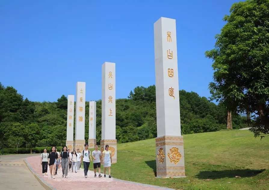 在庆祝新中国成立70周年前夕,象征着阴阳五行、天人合一的大型景观五行柱在星空彩票老版本下载仙葫校区合德楼西侧、尊贤路旁落成,宛如五根擎天玉柱排列开来,泥金色的字体和图样在阳光下熠熠生辉,寓意集天地日月之精华,壮哉!