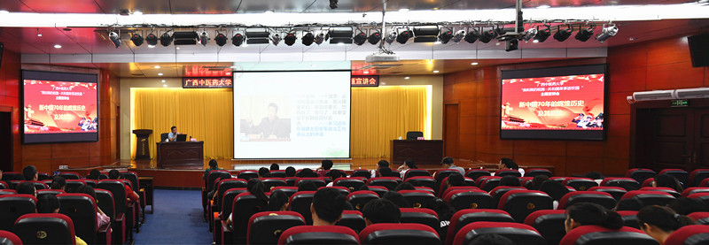 活动由中共广西区委党校党史党建部凌海金教授主讲。凌海金以“新中国70年光辉历程及其经验”为主题,从新民主主义向社会主义的过渡、社会主义建设在曲折中前进、改革开放,走上中国特色社会主义新道路、历史的启示等四个方面,用丰富鲜活的历史事实,为同学们深入浅出地讲授了新中国成立以来的光辉历程及宝贵经验。