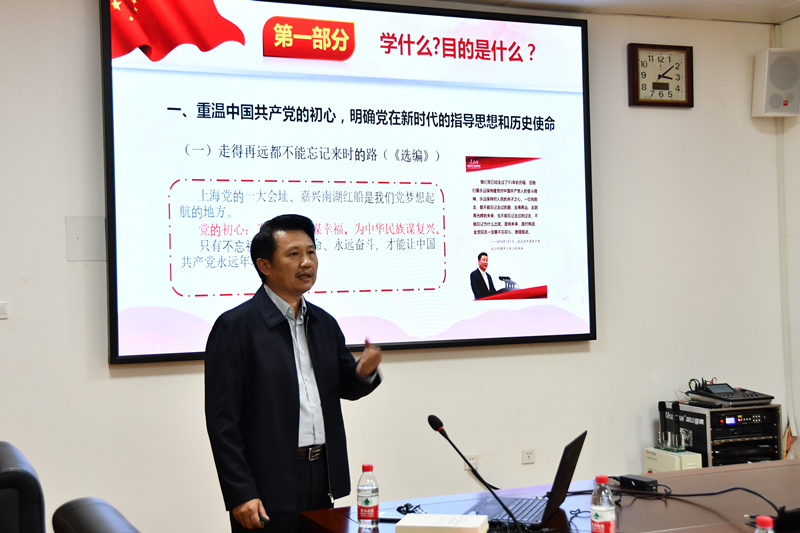 10月31日下午,在学校仙葫校区合德楼525会议室,学校党委副书记、主题教育领导小组办公室主任庞宇舟为党委统战部、人事处、招生与就业处、离退休工作处、工会、壮医药学院、瑶医药学院、骨伤学院、针灸推拿学院、护理学院的处级领导干部上了一堂生动的党课。