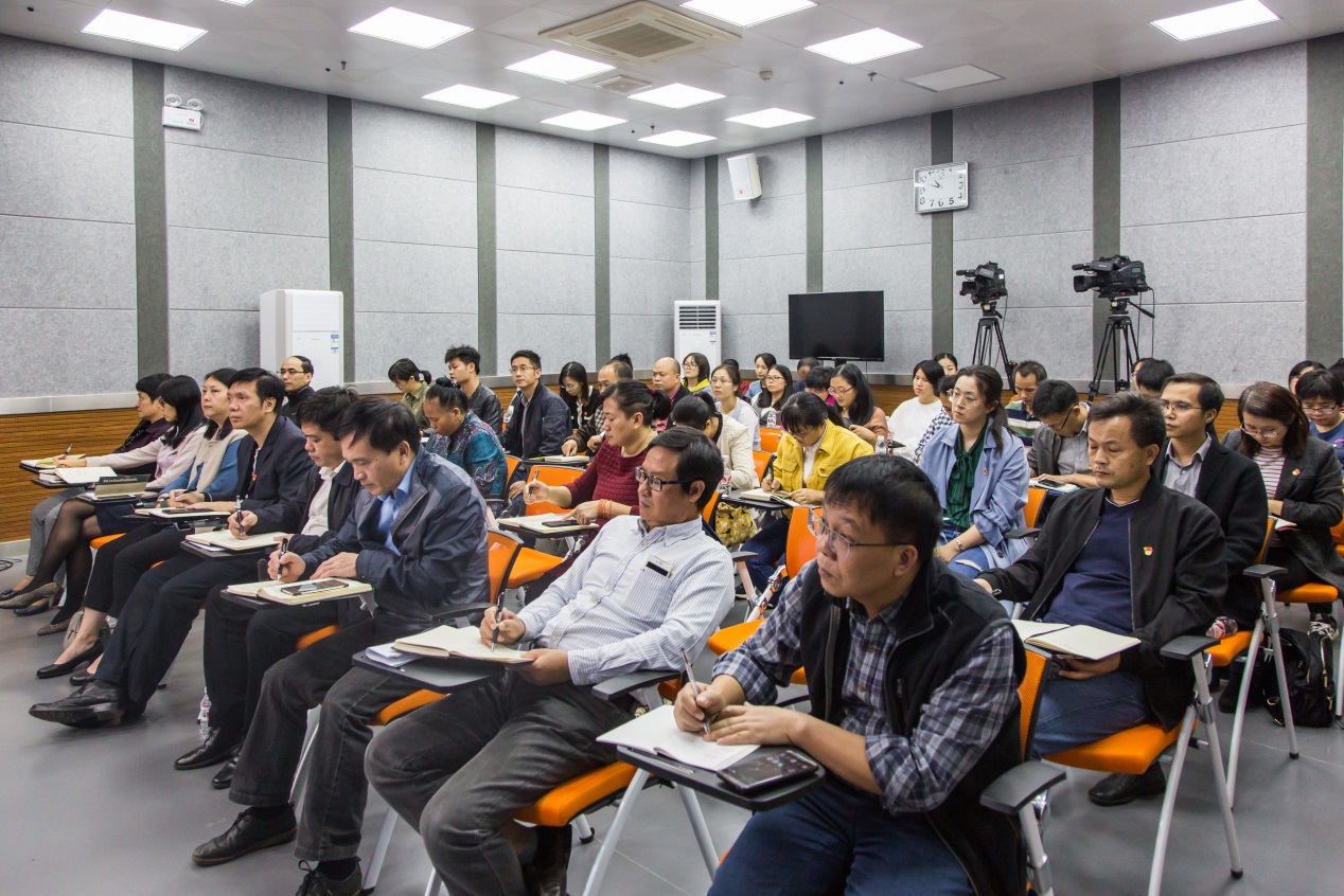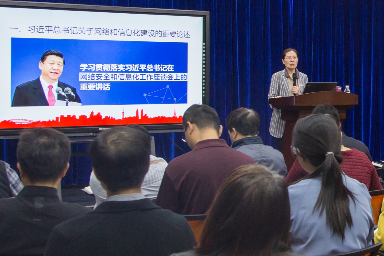 10月31日下午,学校副校长冷静在图书馆8楼多功能演播室给科技处、图书馆、现代教育技术与信息中心、网络和信息化管理办公室、外语部、药学院的处级干部、全体党员就“加快智慧校园建设,助推学校内涵发展”专题上主题教育党课。