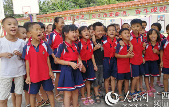 马塘村小学的学生齐声喊道:“感谢唐爷爷!”(星空彩票老版本下载供图)