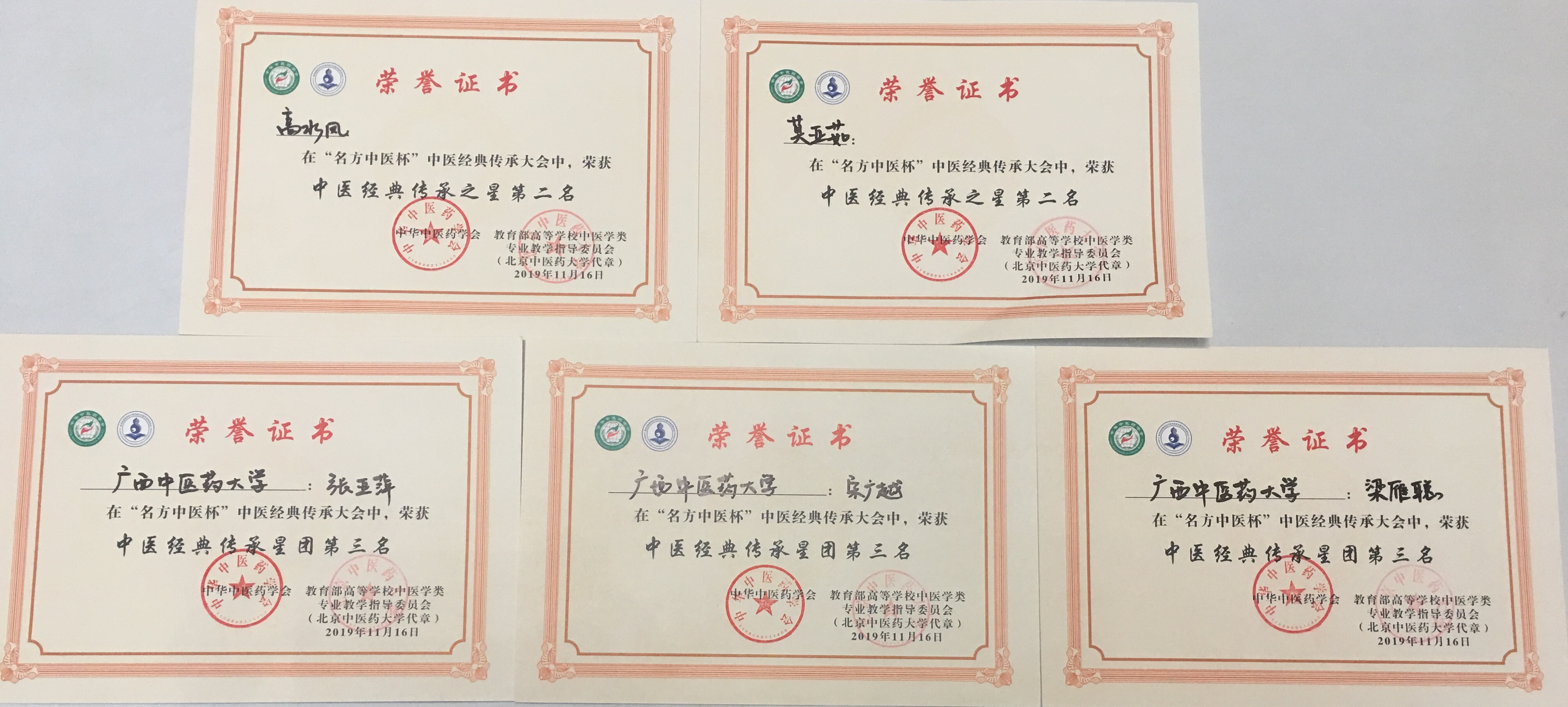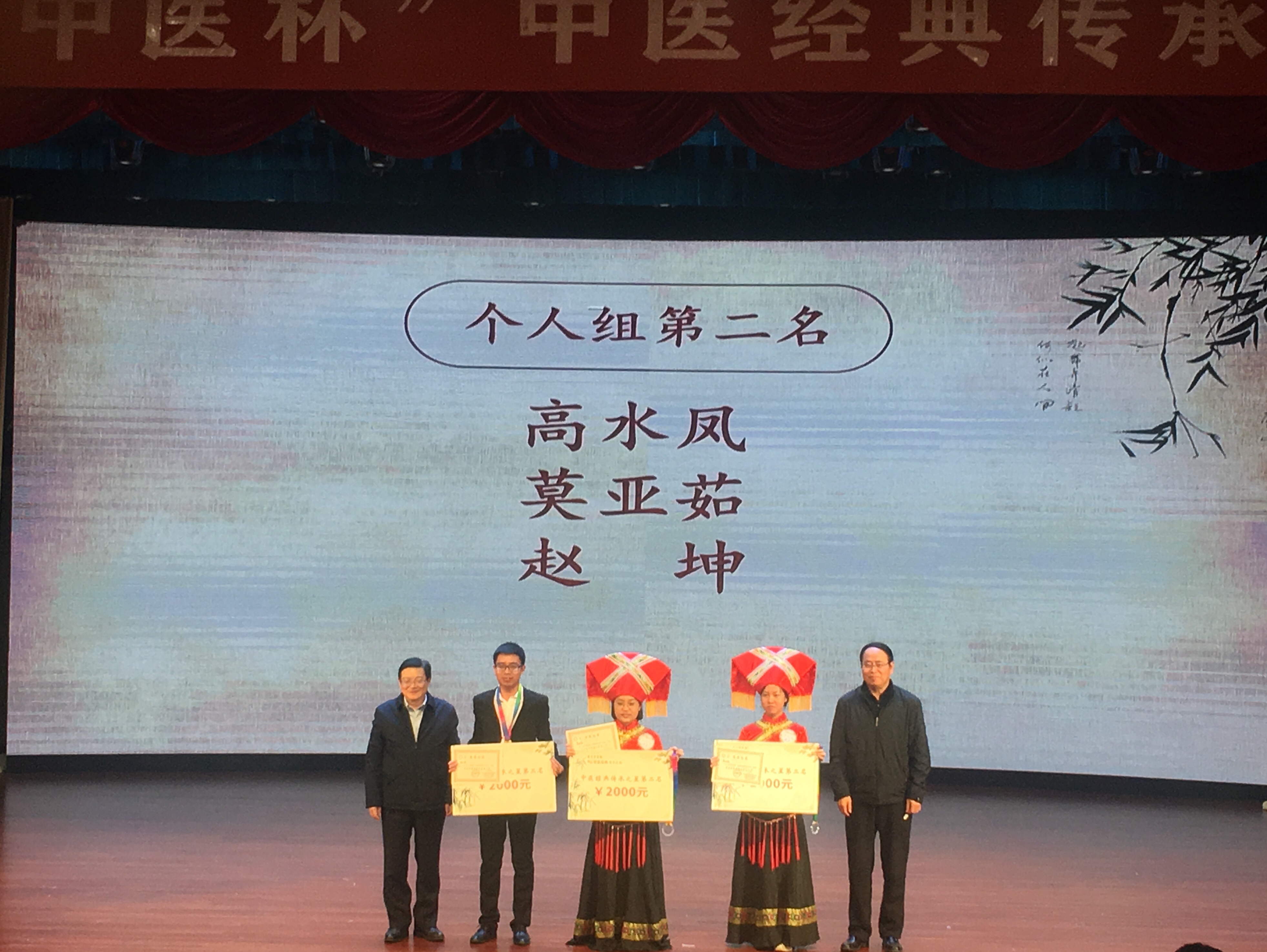 经过激烈角逐,我校代表队荣获“名方中医杯”中医经典传承大会团体组第三名(总体排名第7),个人组2名学生均荣获第二名(总体排名第4、5)。