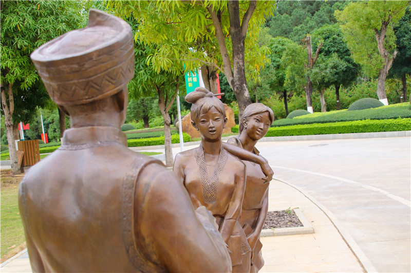 近日,在学校仙葫校区医圣广场旁,仲景大道与亲亲路交汇处,来了几位引人注目的“壮族学子”——由广西美协主席石向东为我校创作的具有壮族元素青铜组雕。