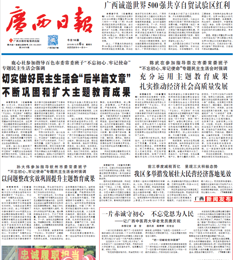 【广西日报】一片赤诚守初心 不忘党恩为人民——记星空彩票老版本下载老党员唐庆祝