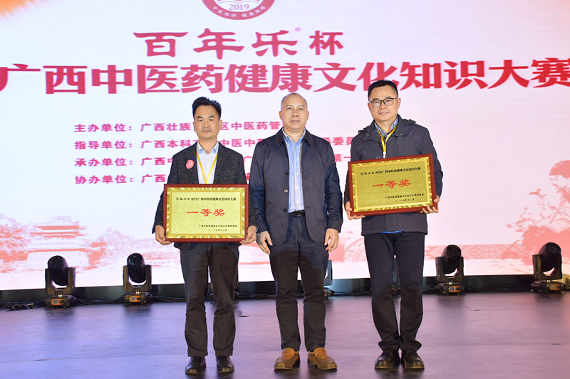 广西壮族自治区中医药管理局副局长黎甲文为获得一等奖的代表队颁奖