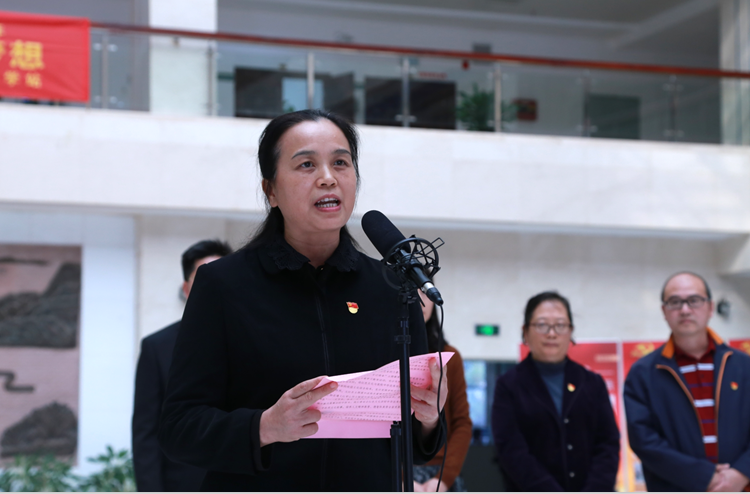 韦雪芳在致辞中指出,这次红色展是一堂生动的”不忘初心、牢记使命”主题教育的现场教育课。韦雪芳希望学校师生要结合新时代特点弘扬革命精神,传承红色基因,坚定理想信念,厚植爱国情怀,走好新时代长征路。结合主题教育,组织好党员干部以主题党日活动的形式开展学习教育活动,充分发挥红色主题展的作用。结合学校实际,将红色文化与我校中华优秀传统文化、中医药文化特色浓郁的校园文化结合起来,充分发挥学校博物馆全国科普教育基地、自治区爱国主义教育基地的作用,从红色主题展中汲取丰富精神滋养,丰富学校的校园文化。