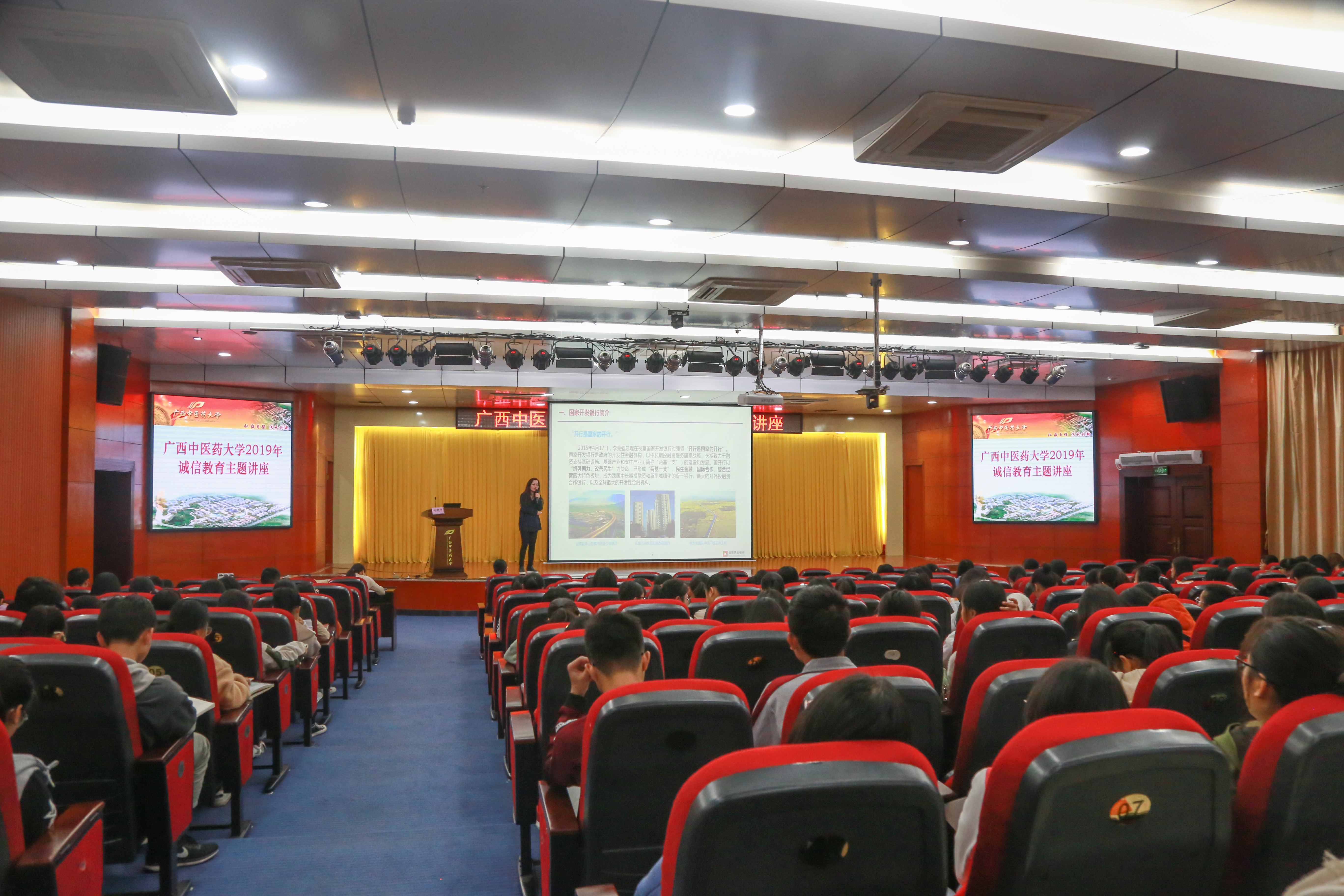 根据广西壮族自治区教育厅对2019年高校学生资助诚信教育主题活动的部署,12月13日下午,国家开发银行广西分行客户五处副处长刘晓宇到我校仙葫校区图书馆第二会议室作“诚信教育暨助学贷款业务宣介”专题教育讲座。学校学生工作部(处)部(处)长叶勇玲主持讲座,学生工作部(处)部分老师及学生共370多人参加。