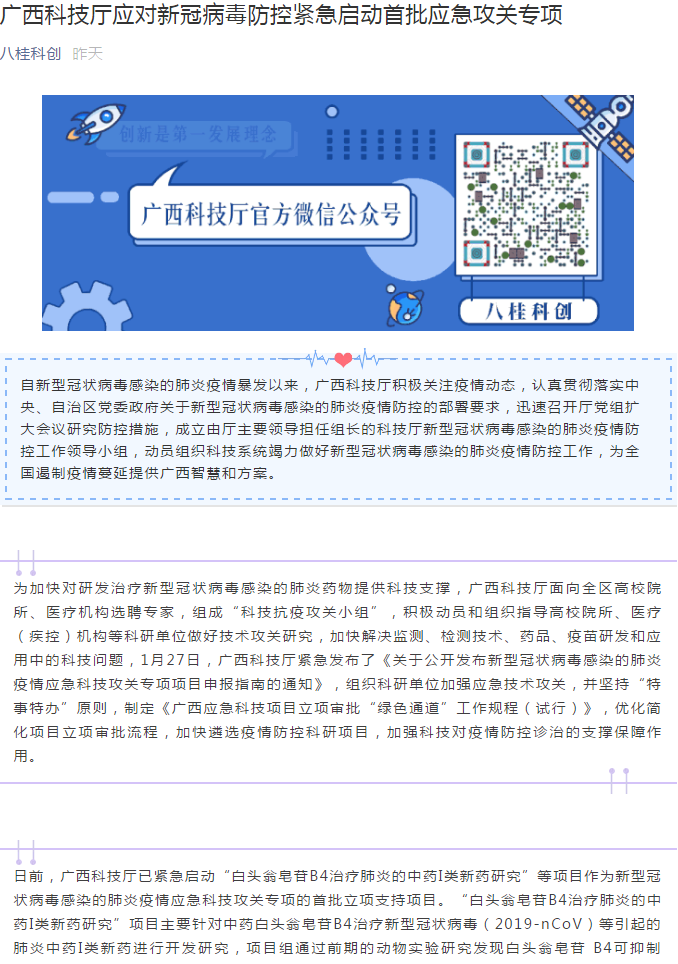 我校获得广西首个应对新冠病毒防控紧急启动应急攻关专项资助
