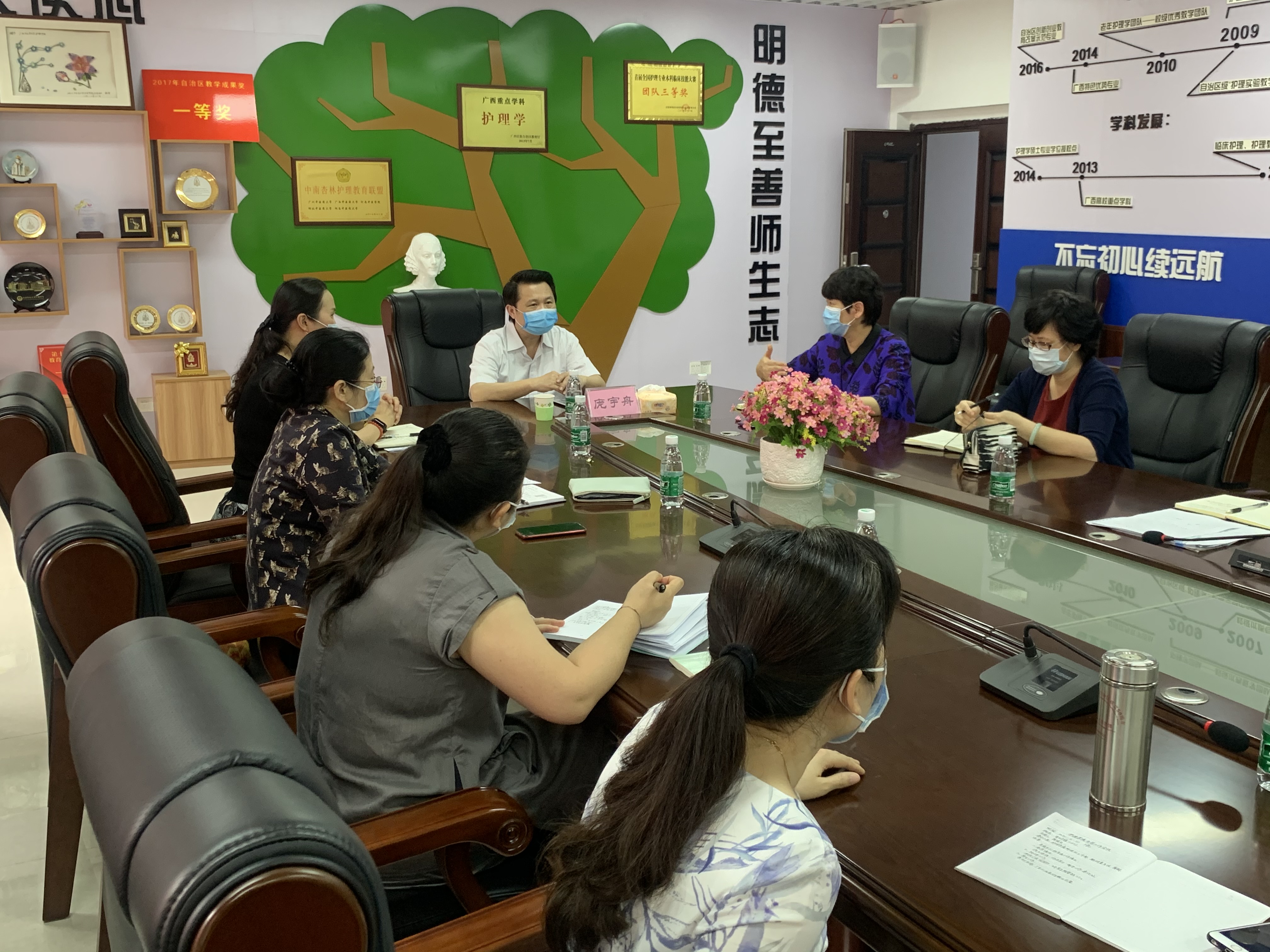 4月20日下午,学校党委副书记庞宇舟到护理学院检查开学准备工作。护理学院领导班子,科级干部和教研室主任参会。会议由护理学院党委书记、院长吴彬主持。
