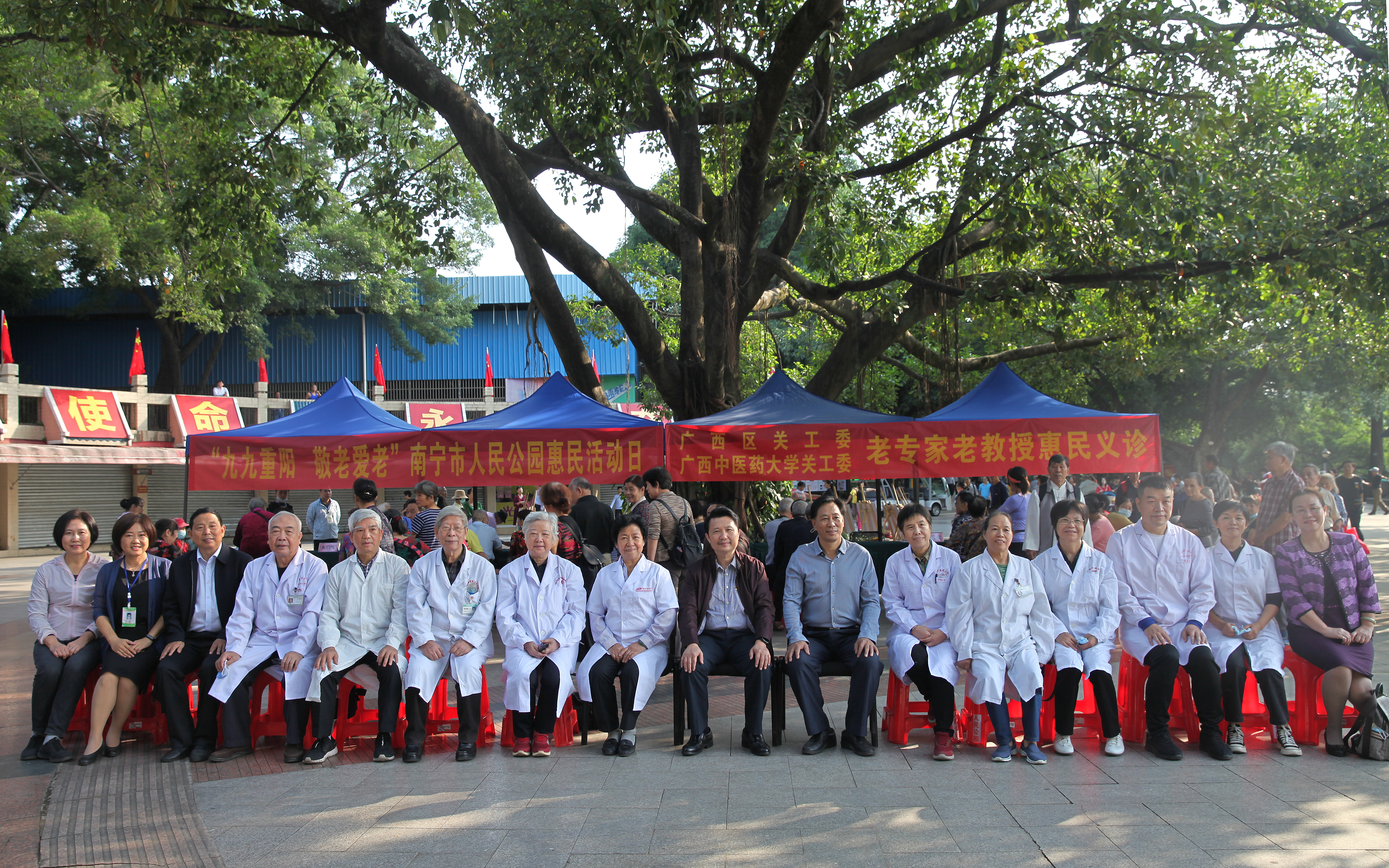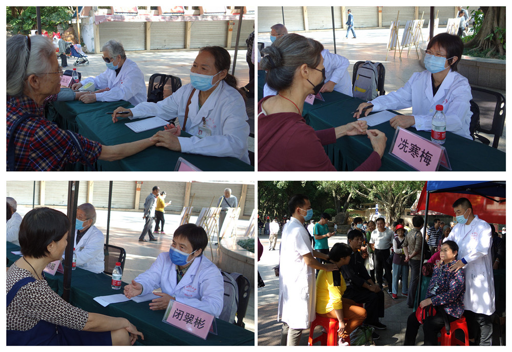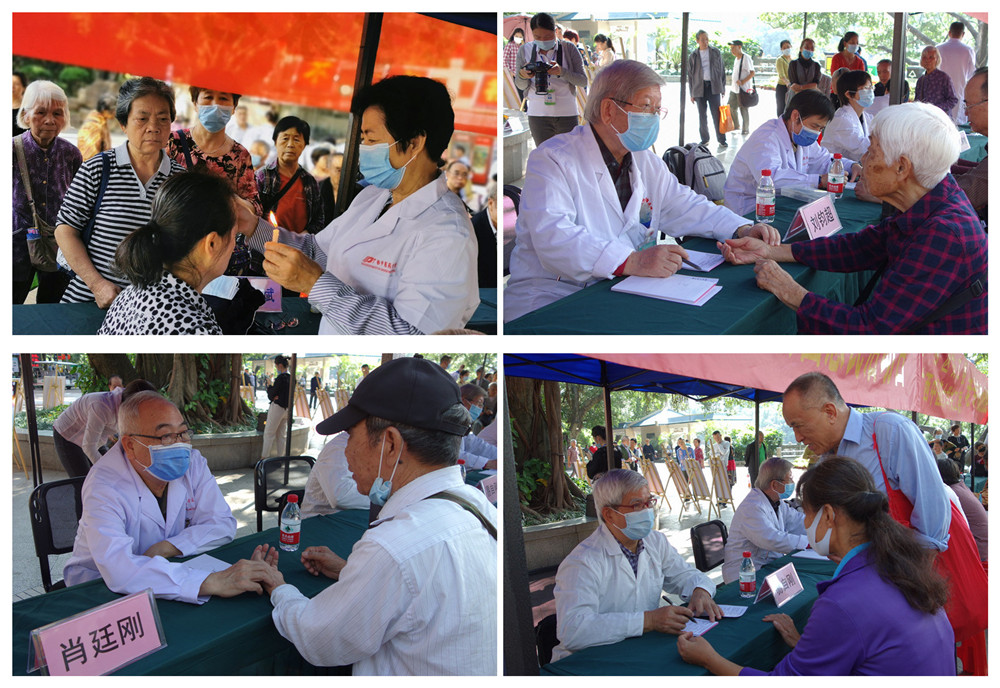 在榕荫广场,由陈雪斌、刘钧超、易自刚、肖廷刚、韦明芳、冼寒梅、闭翠彬、彭佩微、田君明等9名德高望重的老专家老教授组成的义诊服务队,给到场市民开展寻医问诊、药线点灸、推拿按摩、测量血压、健康咨询等活动。义诊涉及中、西医专业,内科、外科、妇科、骨伤科等学科。义诊活动结束时,市民还依旧围坐在义诊桌前不愿离去,大家希望以后这样的义诊活动能够多举行,方便市民在家门口就能看病就医。