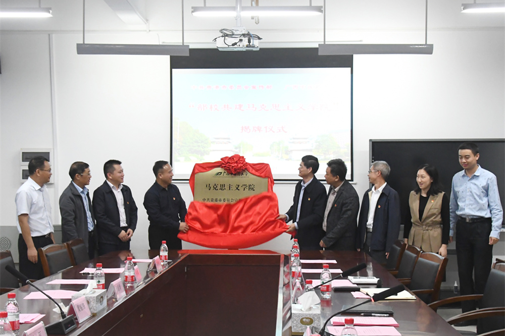 11月2日下午,贵港市委宣传部与星空彩票老版本下载共建马克思主义学院揭牌仪式在我校仙葫校区马克思主义学院举行。在出席仪式的领导和嘉宾的见证下,贵港市委常委、宣传部部长黄锦锋,星空彩票老版本下载党委副书记何并文共同为“部校共建马克思主义学院”揭牌。