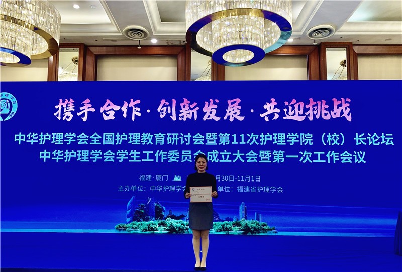 10 月 30 ~31日,第二届全国高等护理院校中青年教师授课比赛在厦门举办,我校一附院护理教研室蔡玲玲老师与来自全国各大院校的54名教师同台竞技,以精心的教学设计,流畅的语言表达、精致的课件呈现、清晰的答疑解惑获得比赛二等奖的佳绩。