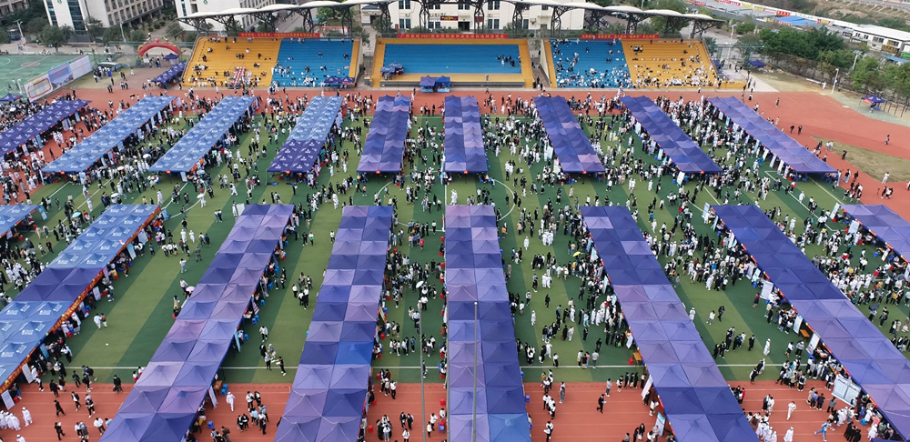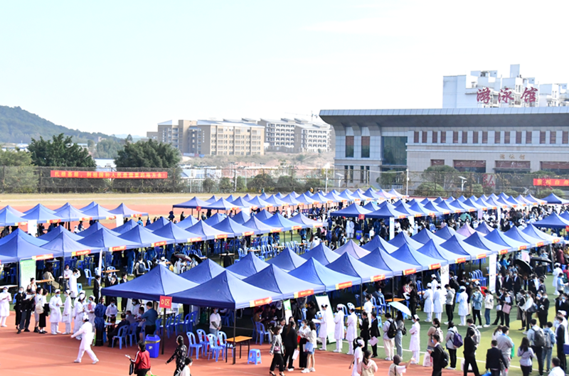 11月14日,由广西大学生就业服务中心主办,星空彩票老版本下载、星空彩票老版本下载赛恩斯新医药学院共同承办的广西高校2021届中医药类毕业生双向选择洽谈会在我校仙葫校区运动场举办。来自全国13个省、直辖市、自治区的近430家医药企事业单位参会,共提供就业岗位近2万个,我校3000余名应届毕业生、近2000名历届毕业生及多所外校毕业生和规培生参加了本次双选会。600多名毕业生现场与用人单位签订了就业协议,现场签约率较往年大幅提高,还有大量毕业生与用人单位建立了就业意向。