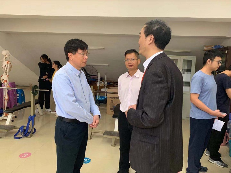 测试当天,学校副校长吴琪俊亲临测试现场看望抽查组专家和测试学生,了解测试工作的开展情况,并与教育部抽查专家组专家湖南师范大学体育学院院长汤长发教授进行了深入交流。吴琪俊表示,我校长期以来高度重视学生身心健康,积极开展各项体育活动,认真组织实施《国家学生体质健康标准》,努力为广大师生员工创造良好的体育锻炼环境。